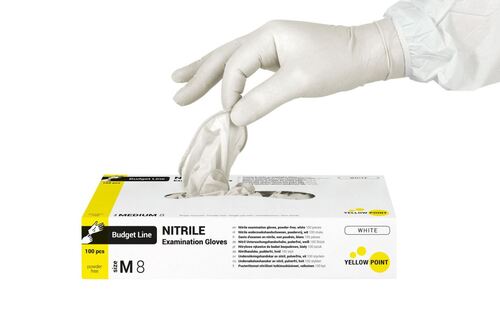 Valkoinen nitriilitutkimuskäsine, puuteriton. Koko M.